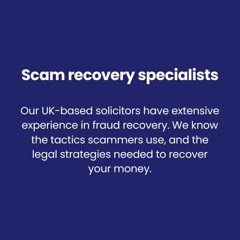 We're here to help. Our no-win, no-fee model ensures that recovering your losses won’t add financial stress. If you’ve lost over £5,000 to a scam, we can help reclaim your funds with no upfront costs. We take care of the hard part so you don’t have to.